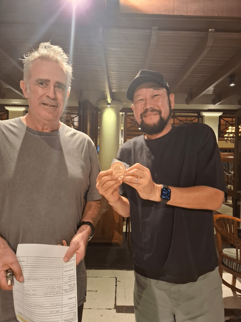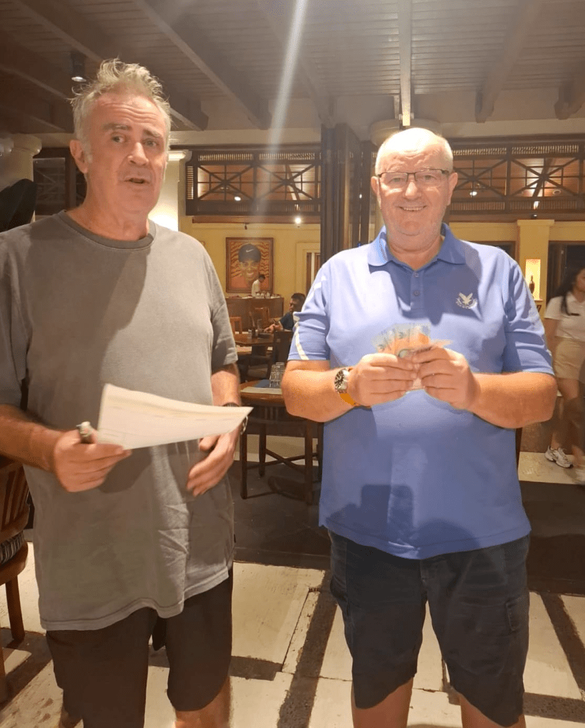On the other side of the course 3 birdies put a smile on Andrea’s face but he was a bit disappointed with the all round showing. Roberto only shows up when there’s trophies to be won so took it easy at Kedaton. Behind them Richard played his usual solid round of golf picking up the low gross prize and playing the course to his handicap. Bill was also solid, someone needs to check his beer bag. Has consumption fallen? Brothers, Axel & Kai were a little fatigued after finishing 8 rounds in 8 days. Axel’s suggestion of a Sunday night game at Modern was ignored by Kai.