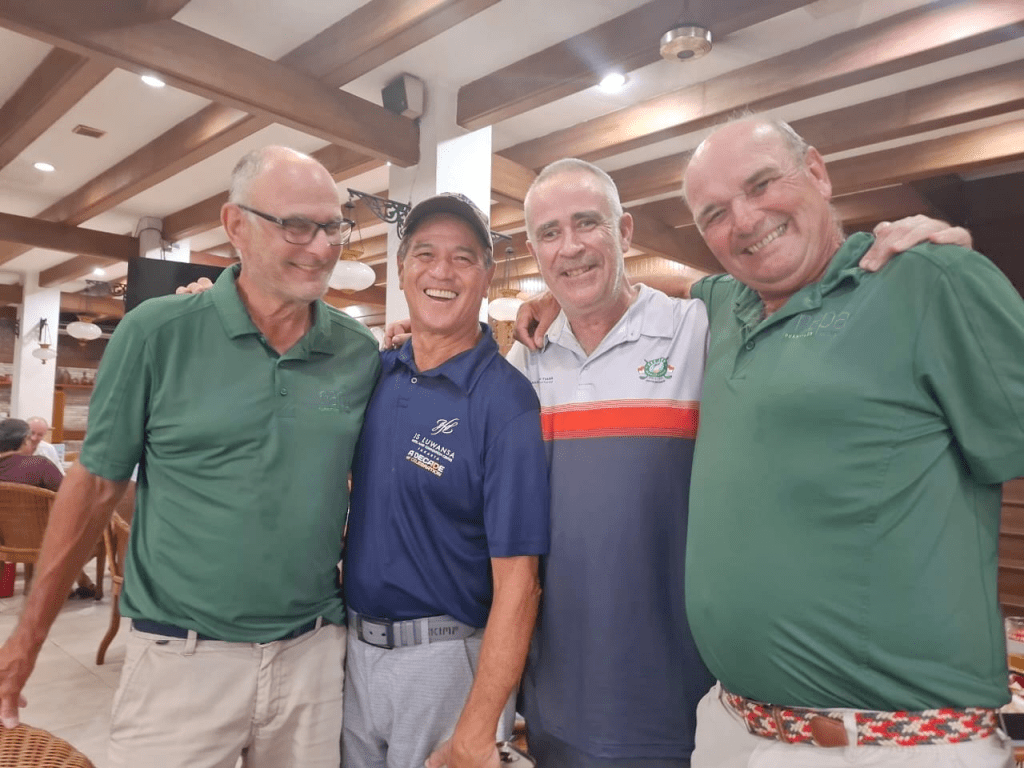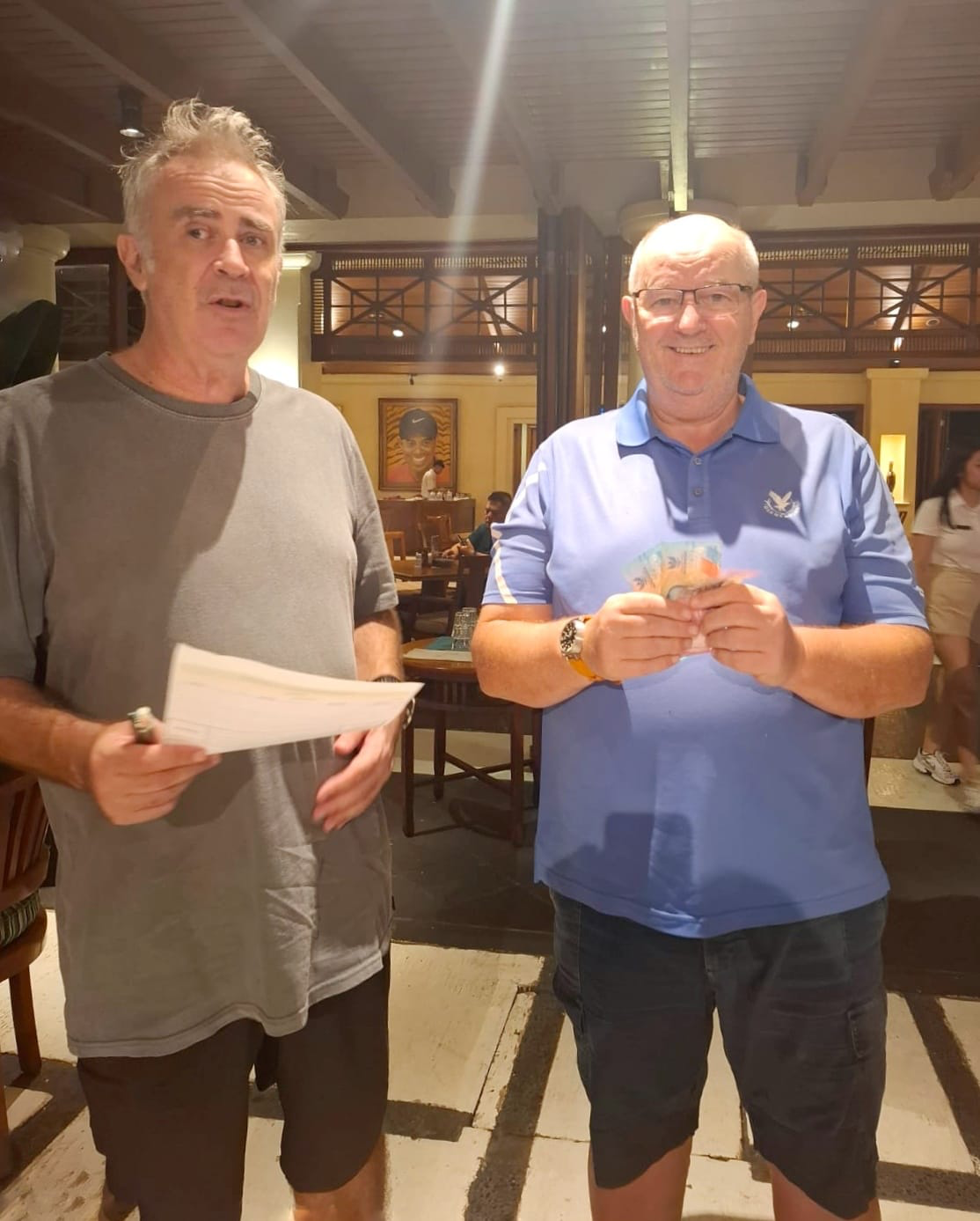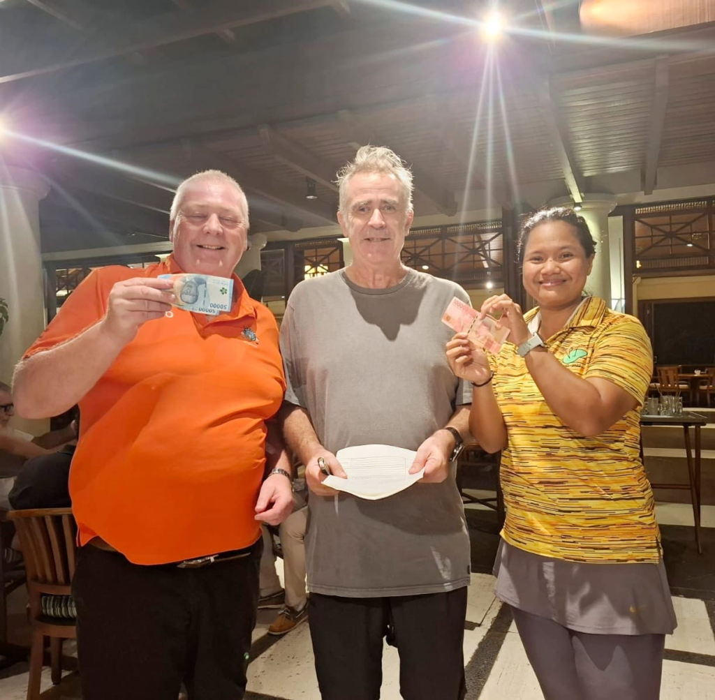Richard propped up after his low gross round by Kai on the left and Axel on the right. They could be twins. Spot the differences for a chance to win a free beer.