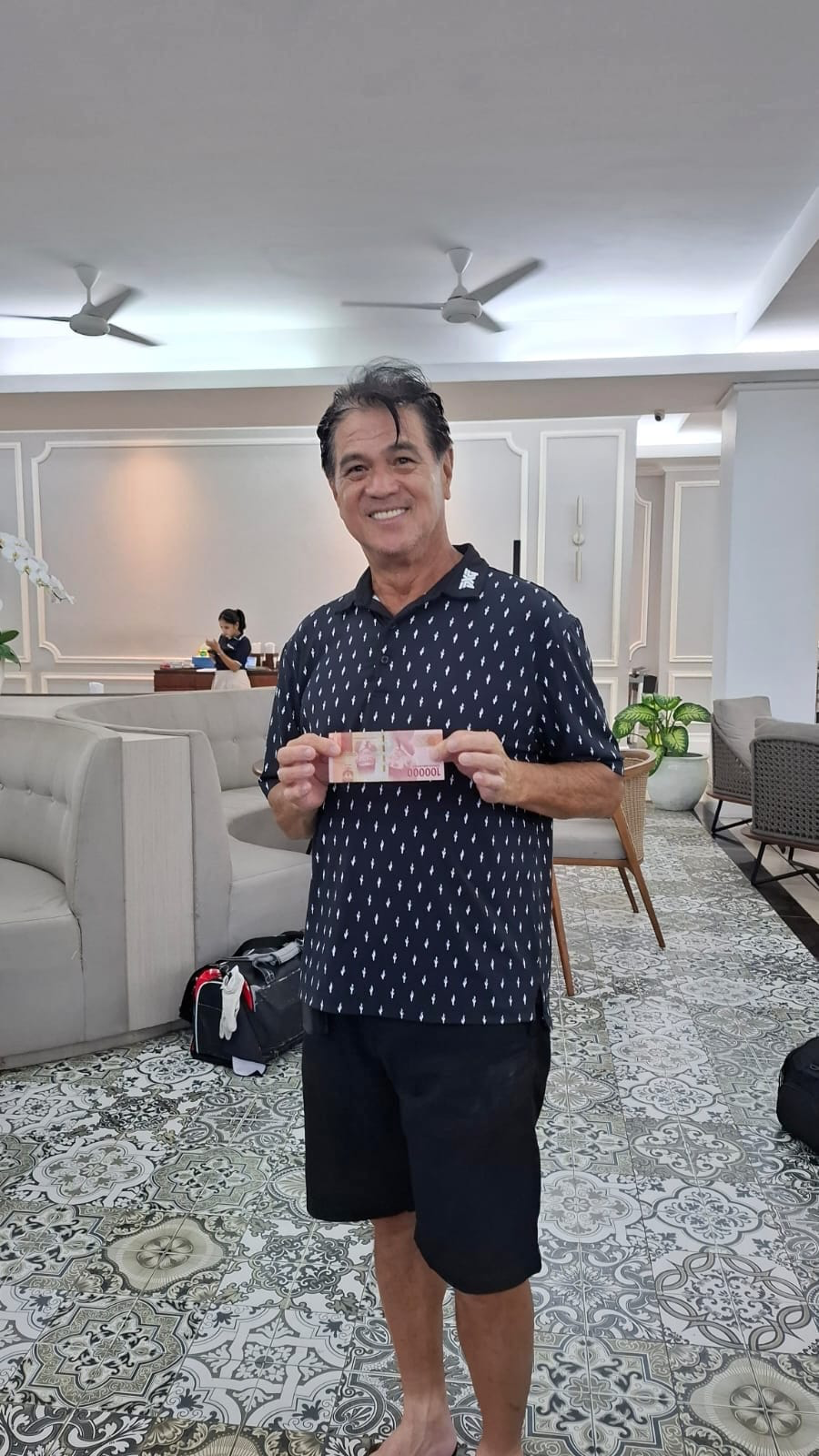 A happy David with low putts, 29 takes the dough.