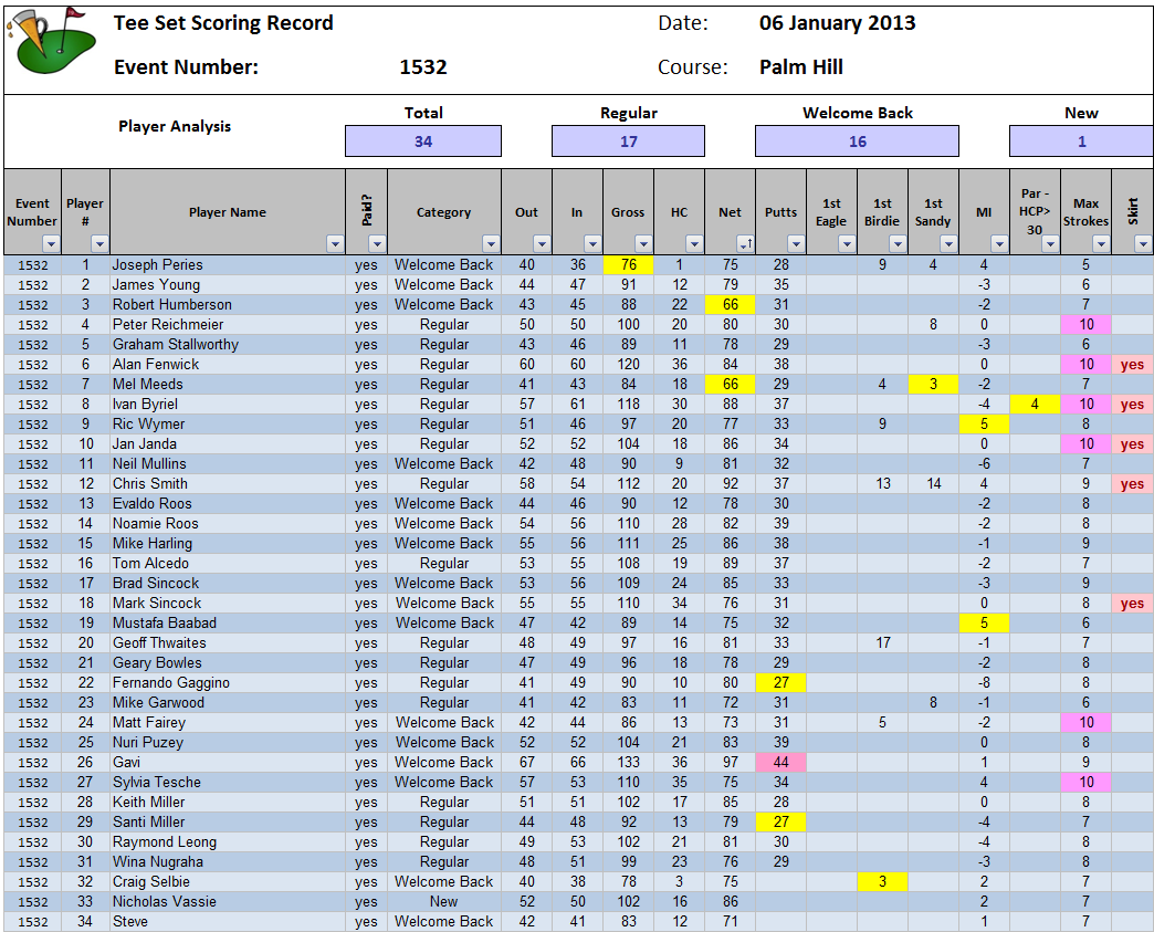 | Slow Play | No reports of slow play and all finished in around four hours. | |||