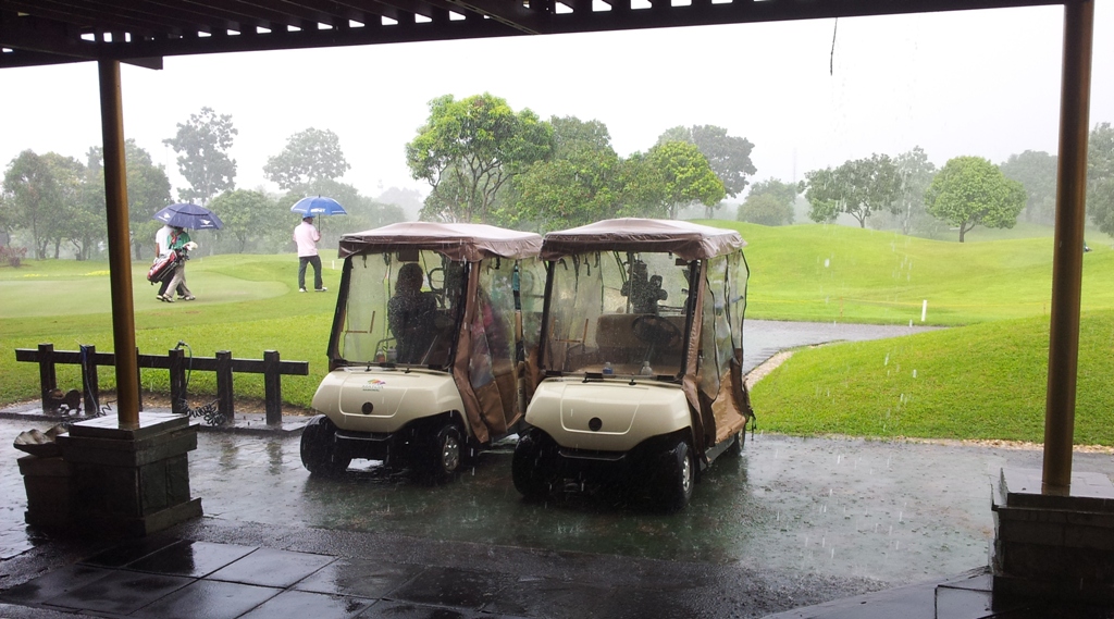 These “before” and “after” photos of the course, the first looking out from the restaurant area at the very time we were due to go out, and the second taken just after our last group came off, serve to perfectly illustrate the worth of a good Pawang Hujan. We understand that Jokowi is after his services so we hope that Graham won’t be too busy to help Tee Set out on Sundays in future.