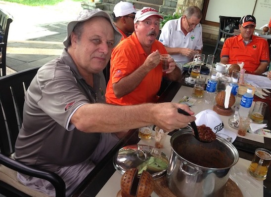 The day’s fun at Matoa for the inaugural monthly medal got off to a great start courtesy of Mike Garwood who, with perhaps just a little help from his “koki”, provided us with a fine brew of hot chili beans ‘n beef that went down extremely well and, washed down with a few jugs of ice cold Bintang courtesy of President Thwaites, saw the many who participated off to a turbo charged start.