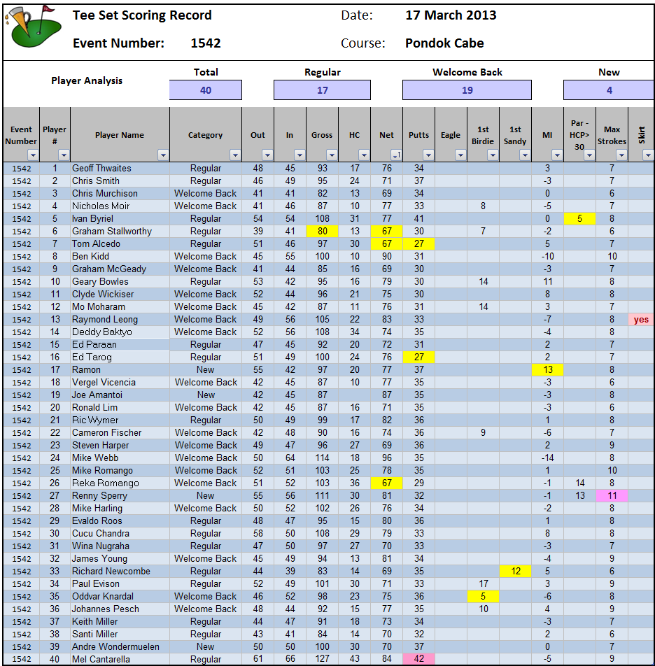 Sunday had us back at Pondok Cabe once again with a very impressive total of 40 players getting away on time from two tee boxes on a course in good condition and with the greens playing much faster than they looked, to the embarrassment of some.