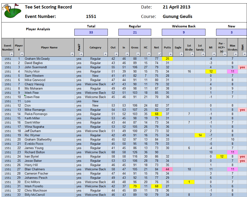 Thirty three starters on a day the course hosted not one, but two Jakarta golf societies. The DOGS with a similar number of starters took over the West course while Tee Set took over the East. One assumes club members had been informed in advance to play somewhere else.