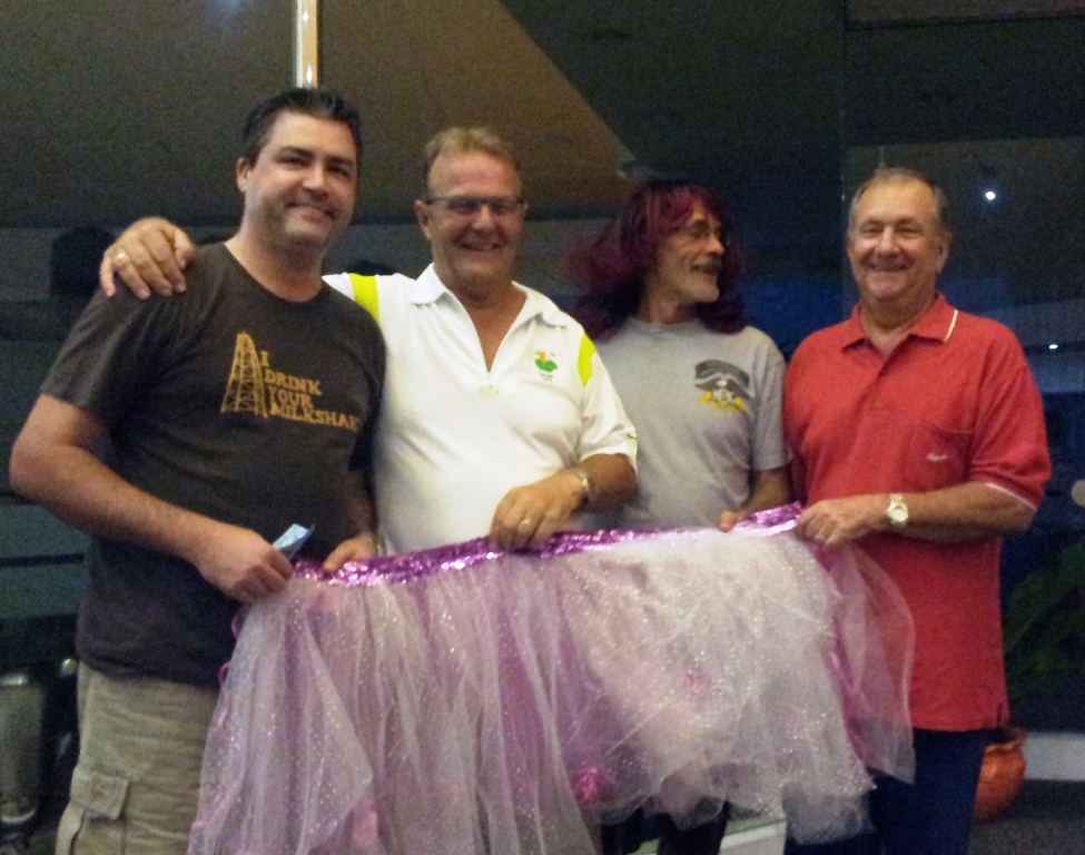 The restaurant staff had also been warned of the course being overrun by orang putih and, as a result, the cold beer stocks were bolstered and proved more than adequate for once. Thanks to Wina and Endang for organizing the booking and getting such a competitive rate of Rp. 688,000 Appreciation also to Mike Garwood, the Tee Set “hit man“, who convinced course management into letting us out 30 minutes early onto an empty course. With the course almost in darkness by 16:30 we would never have finished otherwise.