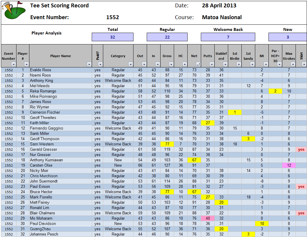 We are pleased to see a steady stream of newcomers to Tee Set and today saw debuts for Paul Davidson, Anthony Kurniawan and Carsten Olse joining us. Welcome to Tee Set to you all.