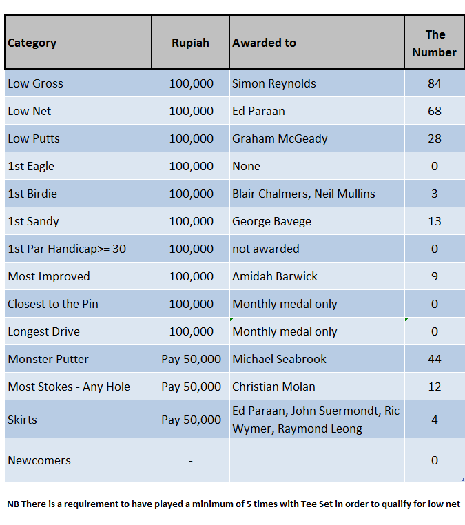 The BYO BBQ will be held at Mike Garwood’s place off Fatmawati on Jalan Teledan #8 and start just as soon as we can get there from PJ. All Tee Setters invited of course. We will provide more granularity on where to find Mike’s place if he ever gets round to sharing it with us 🙂