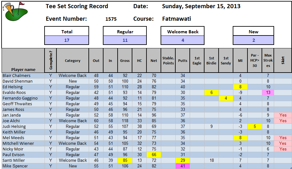 A warm Tee Set welcome to both David Shenman and Mike Spencer; trust us guys, the courses get much better! Mike immediately entered into the spirit of things by taking 41 putts therby enriching the Tee Set treasury.