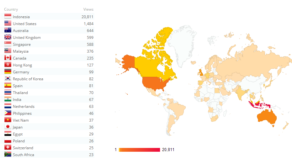 Talking about “around the world”, while we do of course get most of our visits from Indonesia, there are Tee Setters all over the world and they are well represented in our statistics for countries with 25 or more visits to the website which you will see from this recent chart.