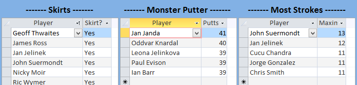 A relatively high 29 putts was good enough to win Low Putts for Ken Runyon while, clearly enjoying the company of the ladies, Simon Reynolds once again birdied his first hole to take 1st Birdie with little ado.