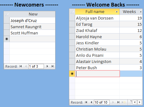 10 Welcome Backs in all with the longest absence being that of Aljosja van Dorssen at 19 weeks followed by Ed Tarog who hadn’t been seen since the Tee Set Championship and Ziad Khalaf for whom this was probably a Tee Set swan song before he leaves for a particularly nasty place elsewhere.