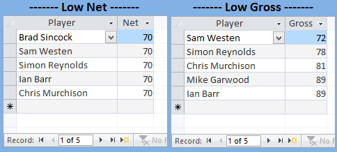 Chris Murchison and Nicky Moir saved some Tee set respectability by winning their match against Geoff Thomson and AN Other while further consolation was gained by Chris Murchison who took Nearest the Pin on that relatively short but always treacherous 11th hole over the water – 2 metres from the hole and sank the putt, well done, Chris!