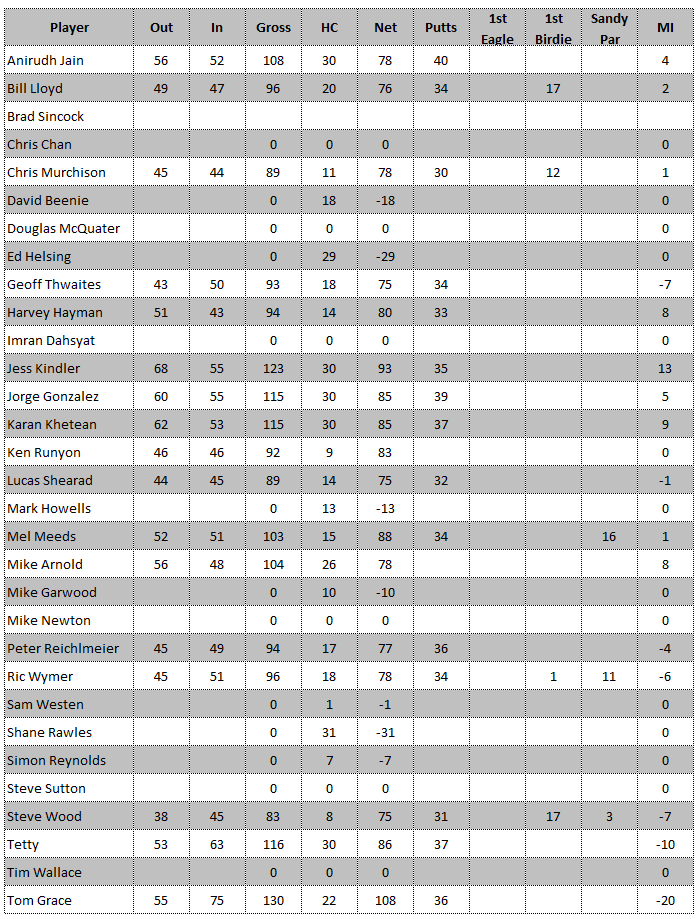 The New Course was in great shape, the greens a little slow but easy to get adjusted to. The longish rough around the greens was the downfall of many, with comments such as “they getting ready for an international tournament or what?” being heard; there is of course only sure fire remedy for long rough … don’t go in there.