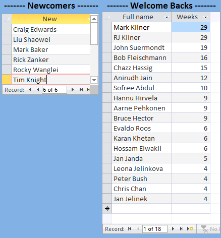 Notable returnees also in John Suermondt and Bob Fleischmann at 19 and 16 weeks respectively, the former after a three-month motor-home tour of Europe, amusing stories of which were to be shared to all unwise enough to come within ten meters of him during the day!
