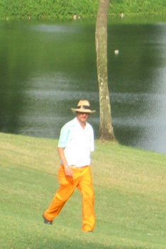 Tough on the eyes, and quite unmissable as you can see. Mrs Shears when approached was unable to explain Lucas’s taste in golf wear saying only that “it is NOTHING to do with me”.