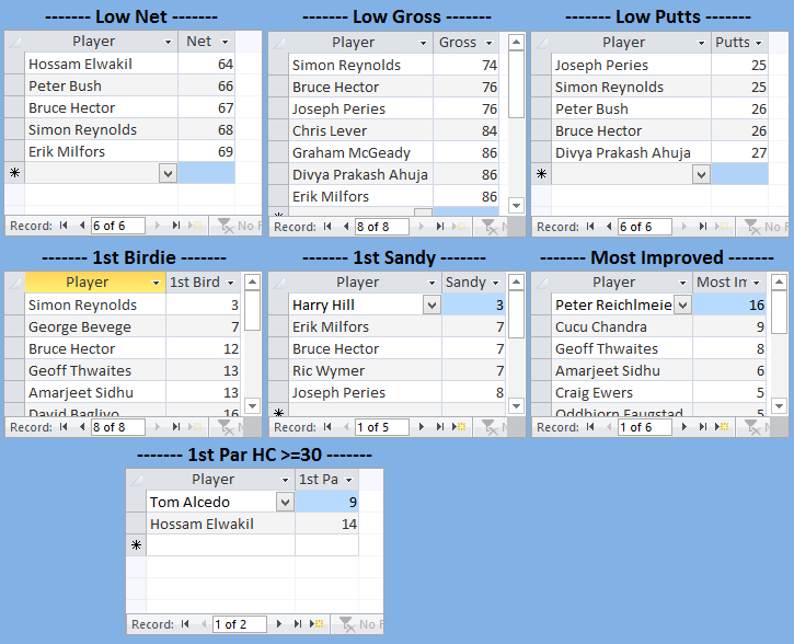 Harry Hill took First Sandy on hole 3, well done Harry, while Tom Alcedo has now taken out a mortgage out on the basis of regularly winning First par over 30, this time it was on hole 9.