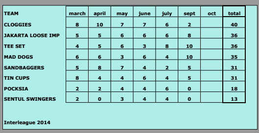 Whether you are playing regular Tee Set or Interleague it looks like being a fine day out on of Jakarta’s premier courses with the weather continuing to smile on us every week – and decent beer at 35,000 a glass at the 19th. Mind numbing prices on the course though, so you may care to take the usual mitigating measures.