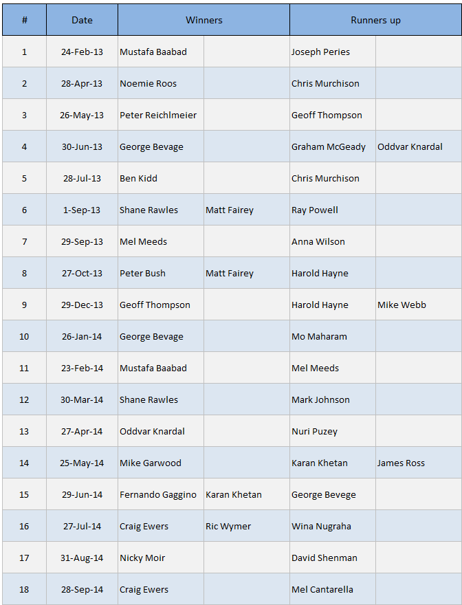 This will be our 19th Monthly Medal since the first back in February 2013 – here is the honours roll since that ground-breaking moment.