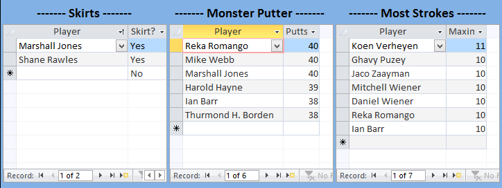 Yes, a week of records as 21 Handicapper Chris Smith, fueled by Santi’s Premium Pies, rocketed to an 82 off the stick and an alarming 47 Stableford points to take the Monthly Medal. Chris’s was, amazingly, matched by another Tee Setter, Ed “YHOG Bandit” Bender Jr who took the red one for his Low Net 61 !