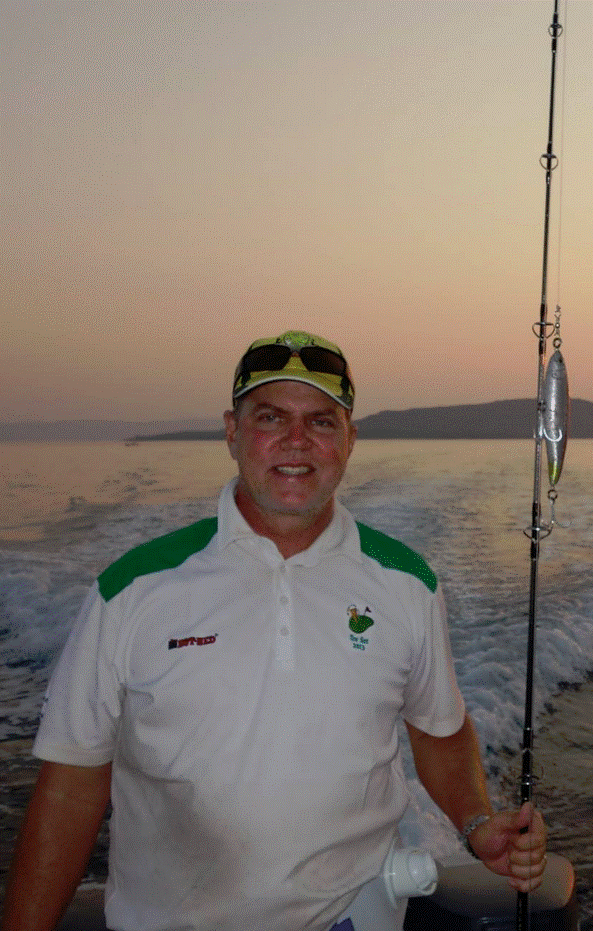 Peter has now been forced “against his will” to join a group of avid fisherman and thus miss his weekly golfing fix. Nevertheless he continued to fly the Tee Set flag by being appropriately attired during his days at sea.