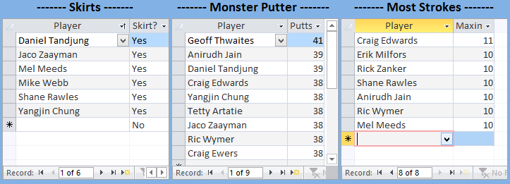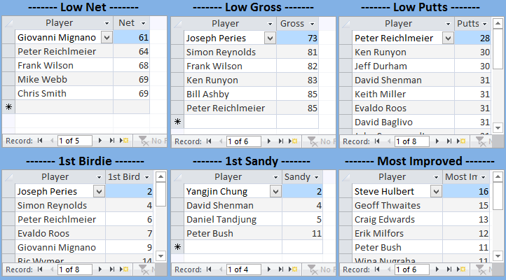 Living life on an airplane has clearly sharpened up Peter Reichlmeier’s putting as he took Low Putts with just 28 of them while Steve Hulbert’s improvement of 16 (yes, sixteen) on his back nine to take Most Improved was the most arresting performance of the year in that category.