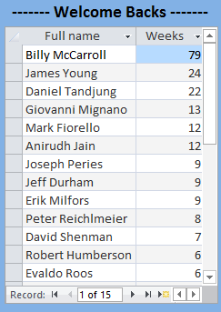 No doubt who took the big “W” award this week with Billy McCarroll at a blow-away 79 weeks. Welcome back all!