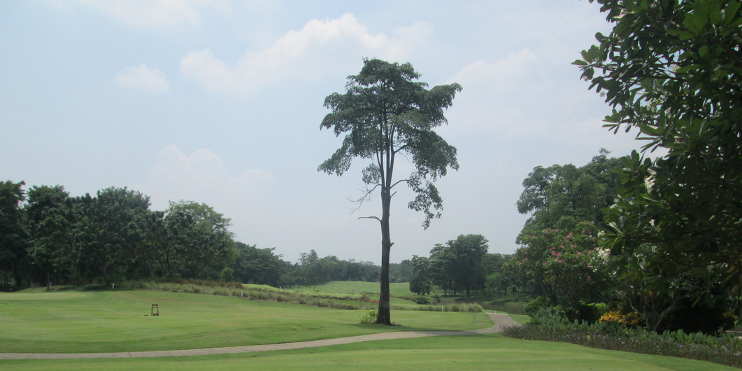 A long and challenging course with excellent greens and more water than a stick could sensibly be shaken at and one which, ironically, we like to play in the rainy season, as it is just about as far away from the rain-prone Bogor area as we can get.