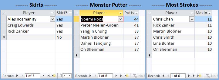 Ales Rozmanity celebrated joining us by securing himself a Skirt, Noemi celebrated surviving the King’s birthday bash with 44 putts, despite her new glasses, to take Monster Putter while Chris Chan and Rick Zanker triumphed against some strong competition to earn “Most Strokes” for themselves with an only moderately impressive 11 apiece.