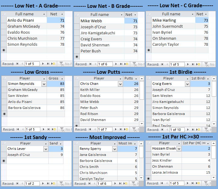 Missed was the award for First Par for handicap >= 30 which is still being resolved – apologies from the Singing President to anyone who though they missed out – he promises to sort it all before next week 🙂