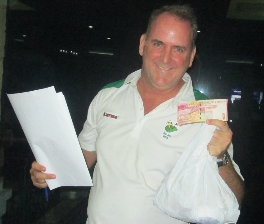 The singing president - and his piesThe Singing President and the Grumpy Pirate tied for closest to the pin, to the centimetre, with the SP offering to share some of Santi’s pies with Graham when he sees him next, if he doesn’t eat them first.
