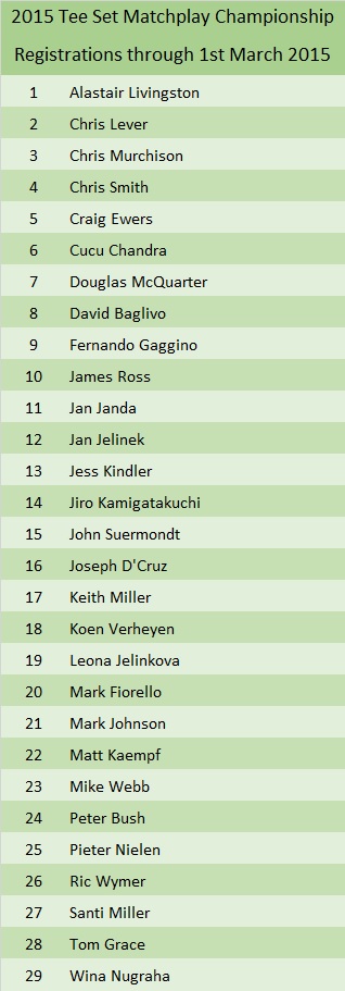 29 Tee Setters have already registered and handed over their red one for the Tee Set Matchplay Championship. The draw will be made on Friday so, if you are going to join in one of Tee Set’s most enjoyable events and haven’t registered yet, then fill this in.