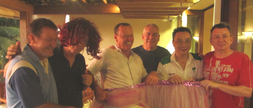 We promised we would have longest drive and nearest to the pin paraphernalia out, and we delivered, Santi having to pay a 50,000 roops for what they described as an “erection fee”, which she later recouped from the Web Guy standing in for just about everyone on the day – he complained that he had never been asked to pay for such a thing before. While Imperial erected, their recording was a flop, so the prizes again went unawarded. Next time!!