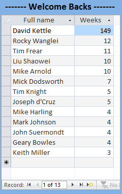 A special welcome back to David Kettle after a stunning 149 weeks away. We do however suspect that he is getting to play elsewhere after his shooting a very handy 84 off the stick.