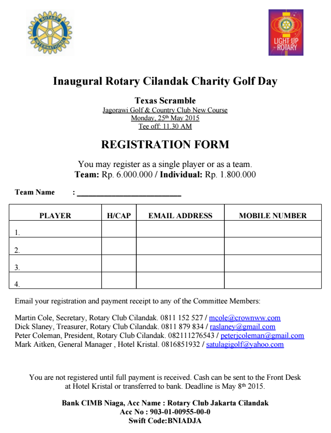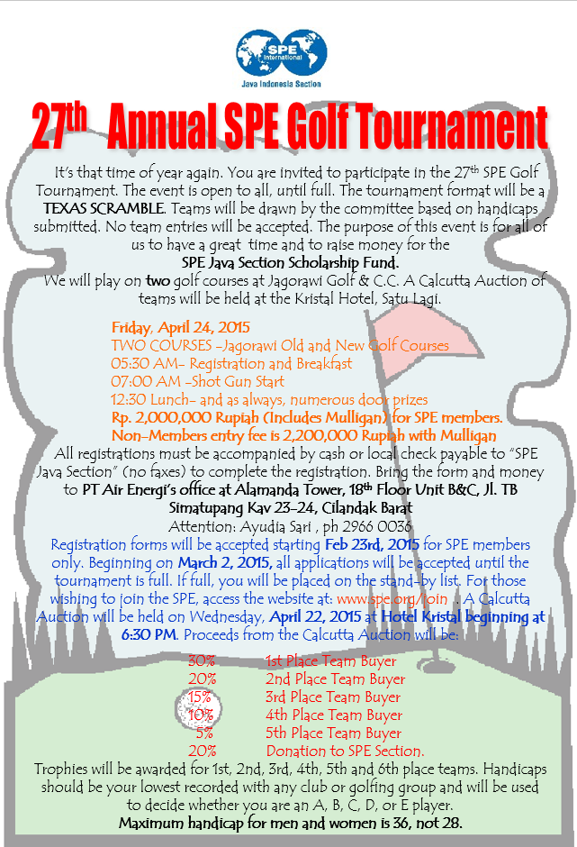 PS a couple of opportunities for play and giving at the same time in the near future, the top class Society of Petroleum Engineeers event at Jagorawi on the 24th April and the Cilandak Rotary event at the same venue on the 25th May.