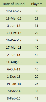 With the Interleague team at Jags and a significant number of our players representing other teams there, we can hardly expect to see the 43 that turned out in February – but early registrations indicate that maybe 25 is on the cards. Who knows?
