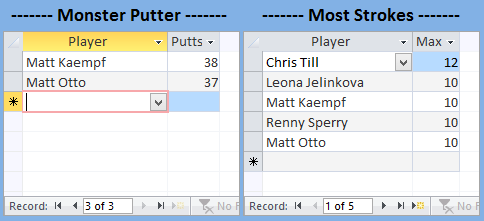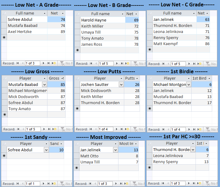 A couple of Newcomers to report in Matt Otto and Michael Montgomery and Matt Otto; welcome guys and enjoy your golf with Tee Set.