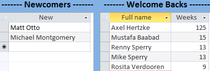 Leading the Welcome Backs by a long, long way at 125 weeks was Axel Hertzke who was to protest that he had never played with us before – until he finally remembered getting a free shirt at the Tee Set Championship at Matoa in 2012!