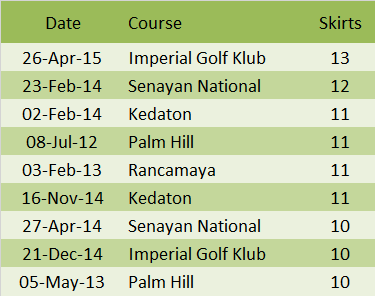 Ya’ll, Whilst I gracefully accept the honour of most strokes (12, I did offer to pay before leaving!!), I can’t accept the SKIRT! I did not get one so please remove me from that list and reduce the number to 12 instead of 13. Sorry, I forgot to complete that section of the score card but that should not automatically be taken as having had a skirt1!!