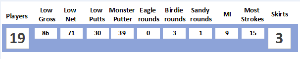 Anthony won his skirt money back with Most Improved after a terrible first 9 (for him) of 53.