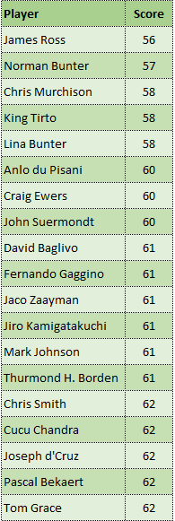 James Ross’ recent good form combined with some judicious decisions around when to leave the driver in the bag sees him at the head of the pack. James can hit it a country mile but direction can most kindly be described as unpredictable 🙂