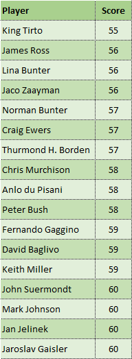 With our leader after round 4 of the eclectic, James Ross, missing, King Tirto was to take advantage and move to the head of the pack by 1 stroke, while many others also made ground. Perhaps most impressively, David Baglivo moved into contention at net 59 despite only having played 3 rounds.