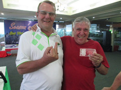 Andre won the money for low nett A grade with a 69, even though his new handicap put him in the B grade – anyway…great round Andre – you are an A grade fella. C grade was also mass confusion, but after awarding it to Malty, we could hardly deprive him when we discovered Tom had shot 2 strokes less, and the chance to photograph these two together was priceless….what was I saying about talent!