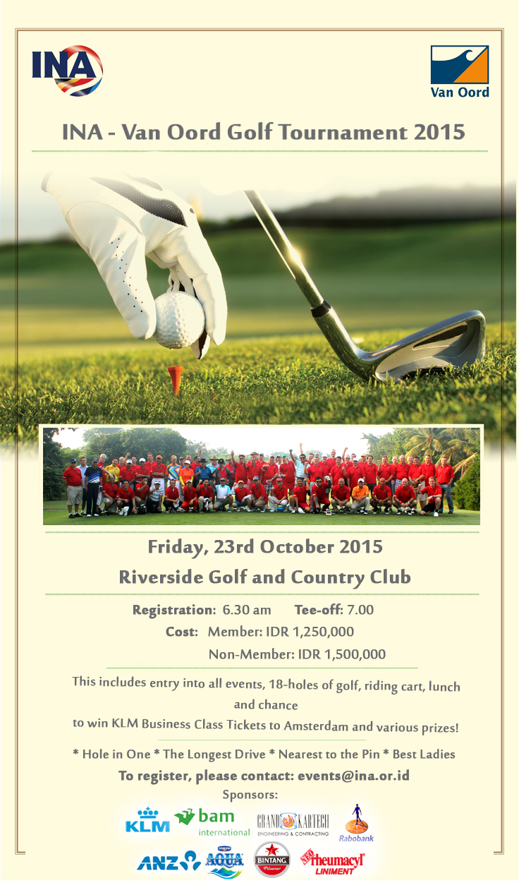 The INA-Van Oord Golf Tournament will be held on 23 October 2015 at Riverside.