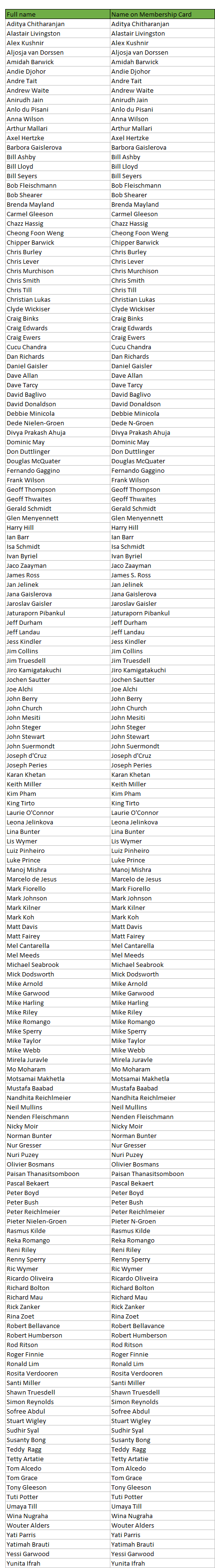 To get things on the road we have therefore added everyone who has played 2 or more rounds since the Championship to the membership card list, a list which you will see attached here. If you want to see your name as displayed on the card to be other than that as presented on that list then you will have to let us know immediately if you have not done so already.