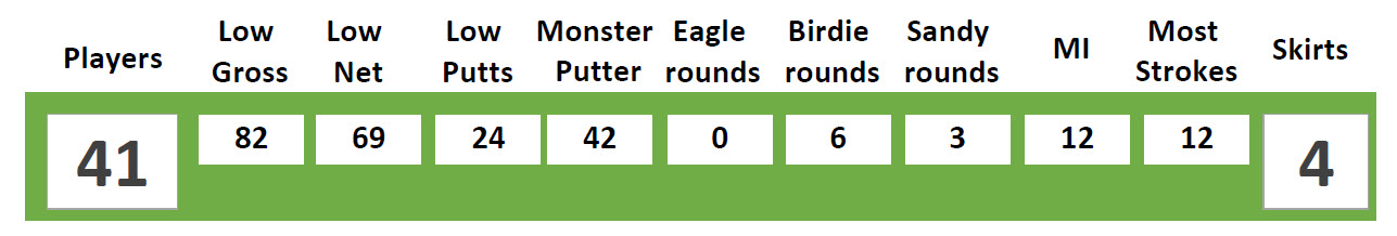 Based on the one prize rule Low Putts was awarded to Fernando Gaggino for his 26, even though Mark Johnson only had his normal 24. First Par over 30 was won by Lina Bunter for her effort on the 4th hole.