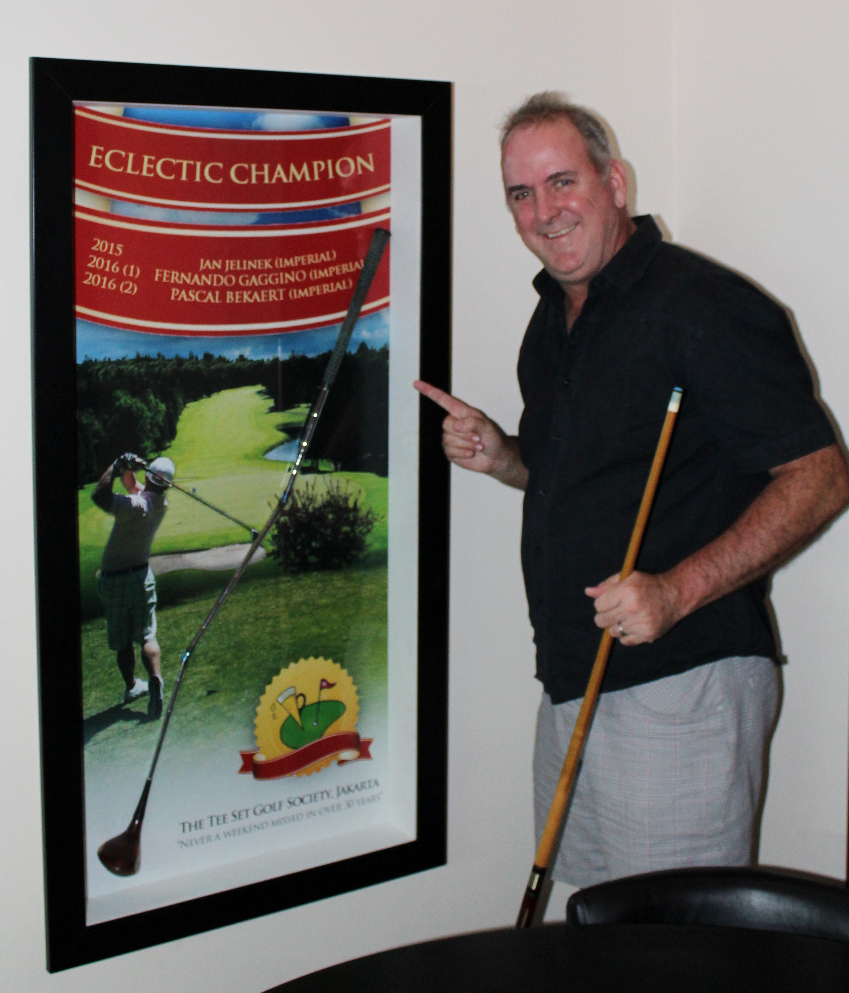 To counter the early closing time of Gading Raya, the ex-committee members and some Tee Setters decided to visit the new president’s man cave for some billiard and visit the old Eclectic trophy in its final resting place, pictured here with the Singing ex-President.