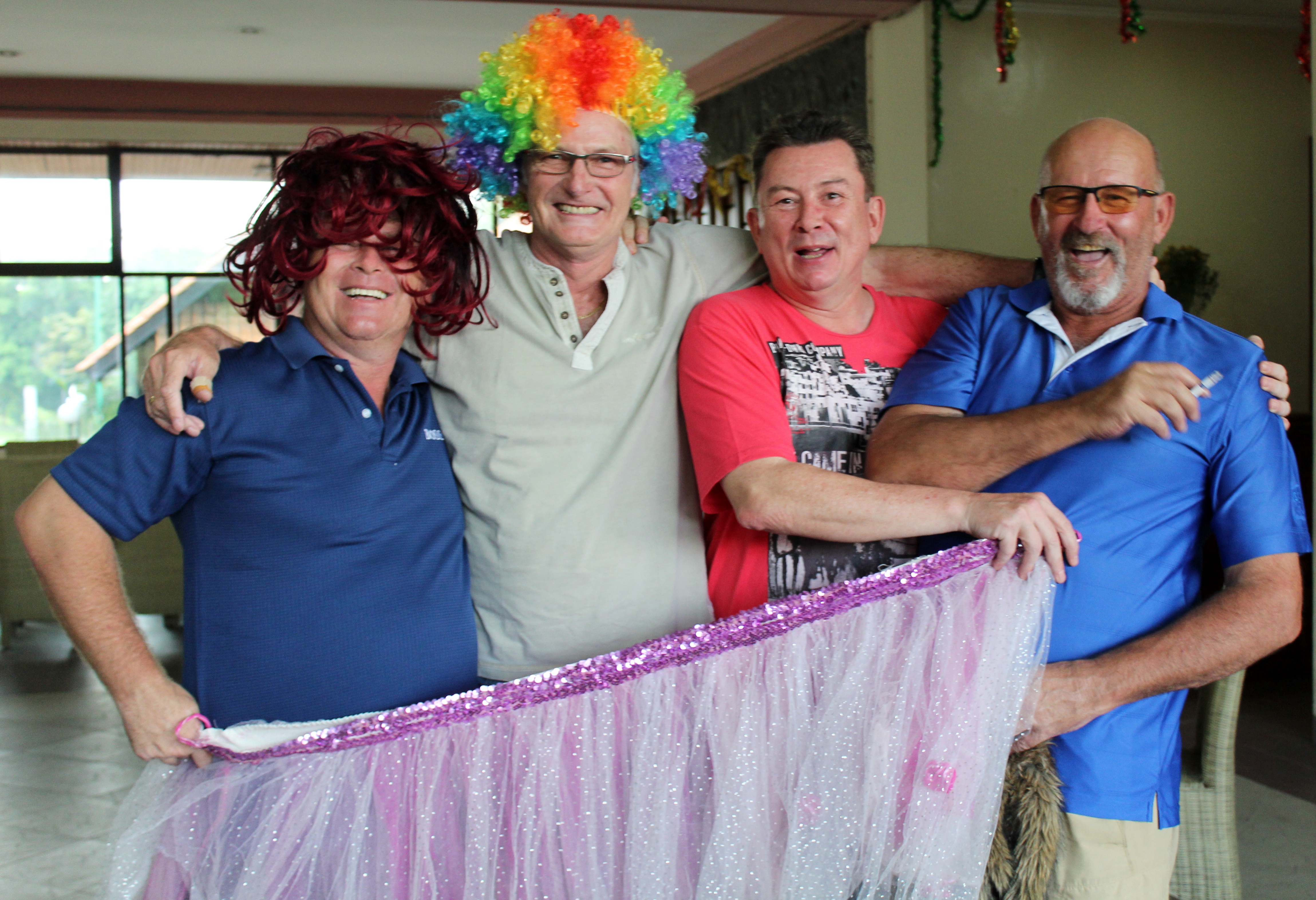 Joining Geary in this less glamorous category were Pieter Nielen-Groen, Kelly Chaisson who even though argued his OB shot might not have qualified as a skirt paid his fine with a smile, Rob Davies who paid his fine but left before the photo maybe because of his frustration to remain handicap less, and once more the President, who even though he greatly improved his drive of late, managed to get a skirt for the third event in a row. In case you wonder Peter Ruffy didn’t get a skirt but was in a cross-dressing mood so decided to join us for the photo.