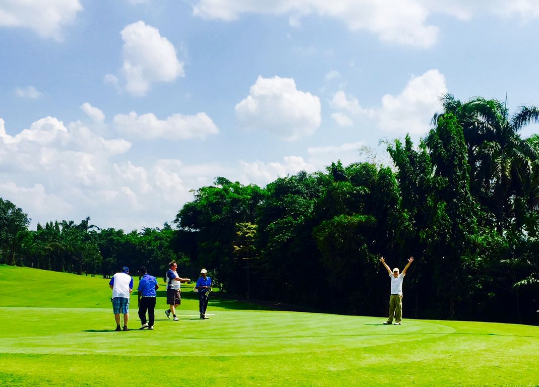 The improved Pangkalan Jati with its new asphalted cart paths, tables and chairs and navy cement boat (pictured below) was quite challenging, as reflected by the fact for once no net sub-par round was achieved on the day and on the other end some surprisingly high scores were, but everybody was in good spirit before, during and after the round. PJ also allowed the participants to stock up on balls, gloves and honey for the year with their incredible prices.