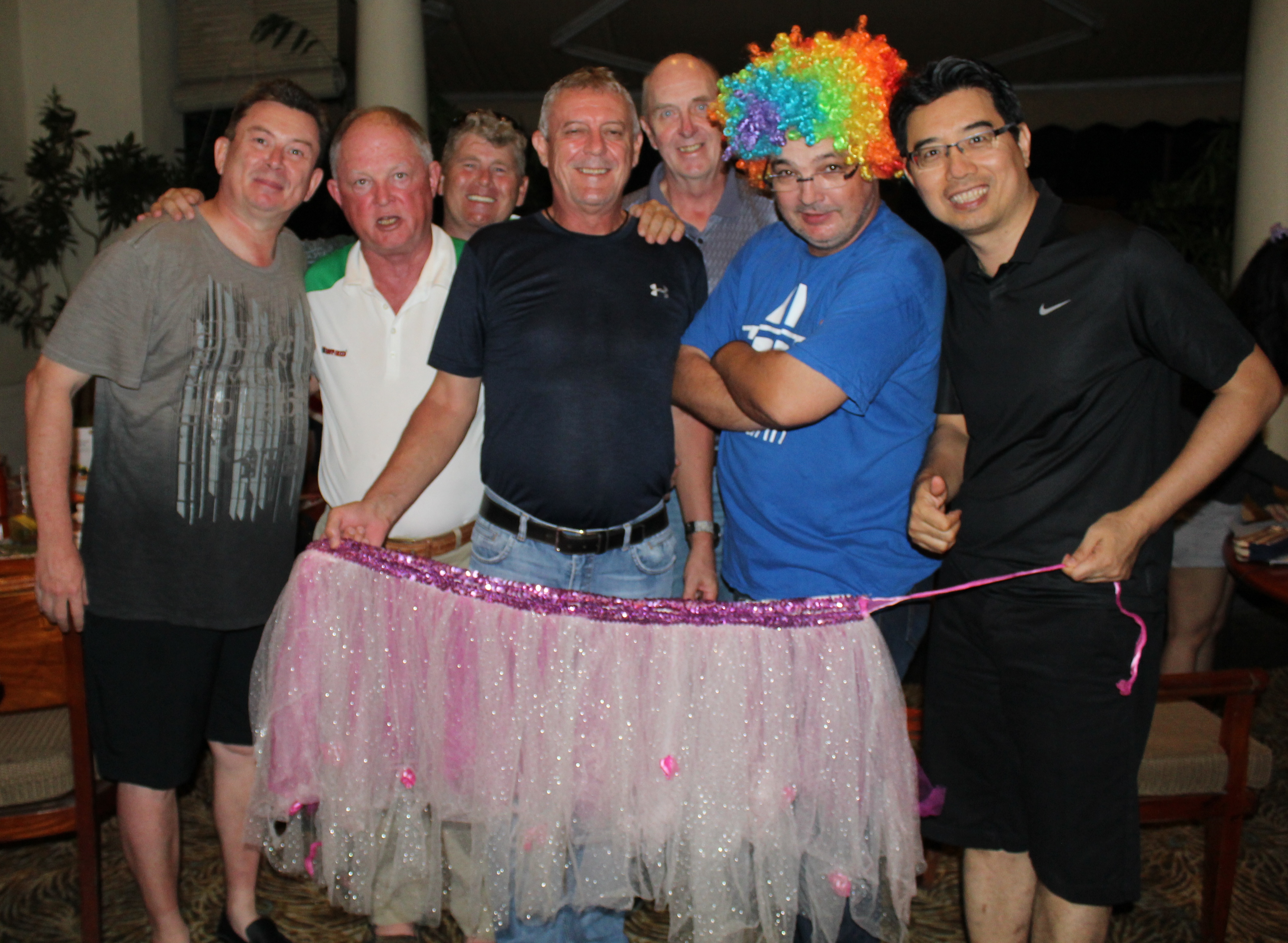 And finally once more Cengkareng produced its share of skirts with 9, of which are pictured below: the President who has now managed a skirt for 4 events in a row, Chris Smith, Kelly Chaisson who got a wardrobe on the day, Mike Riley, Laurie O’Connor, Stefan Thiele and Paisan Thanasitsomboon, as well as the excused Dave Chew and Dennis Wee.