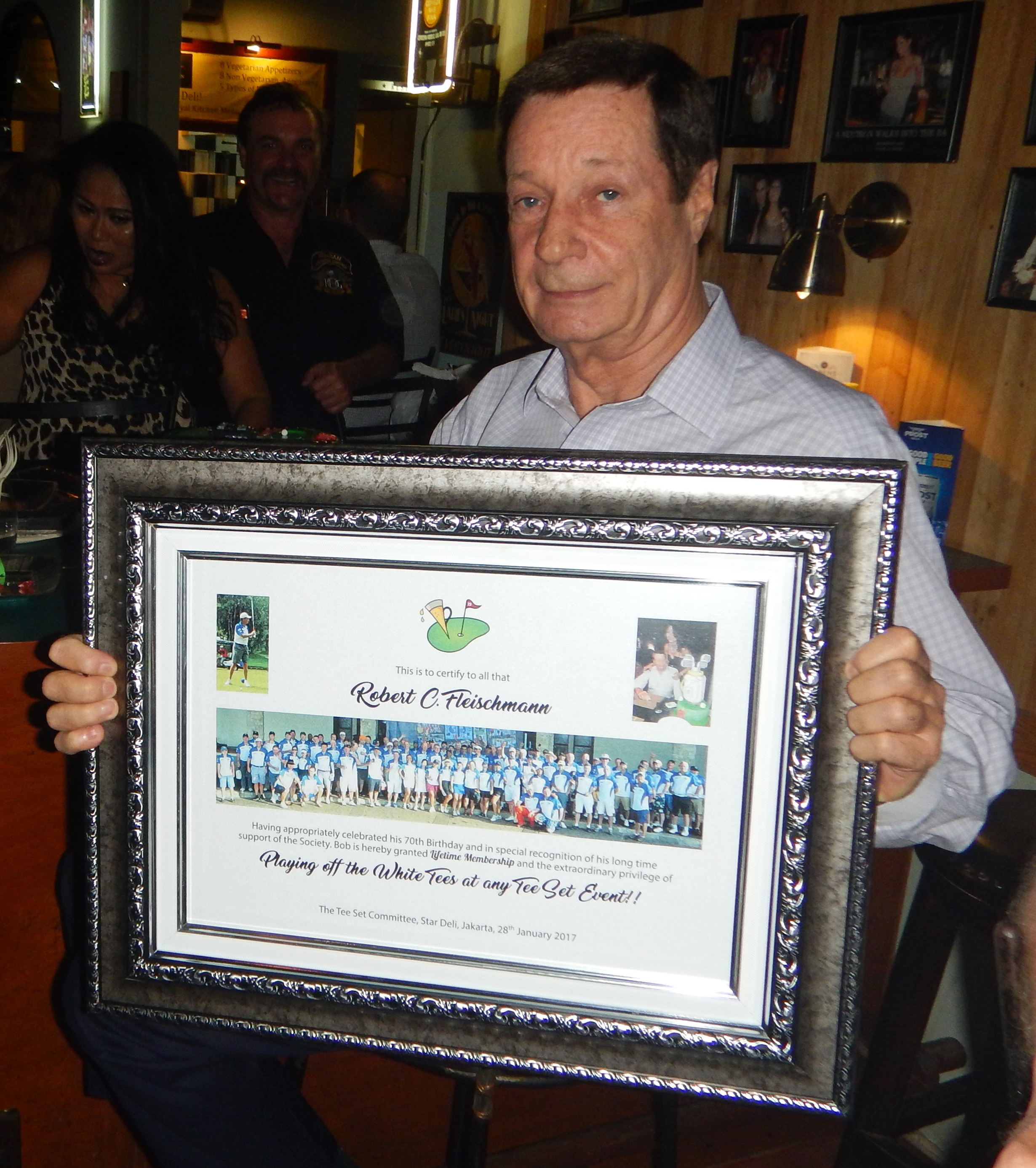 A good contingent of Tee Setters attended Bob’s birthday celebration at Star Deli last Saturday night, during which Bob was awarded a special award for his long and continued support of Tee Set.